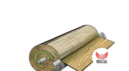 旋切:將建筑木方原木放在車床中間,將切片刀以很小的角度插入原木,然后將原木頂著切片刀旋轉,便可造出旋切木皮。旋切木皮能闊至提供整板(單塊)板面。