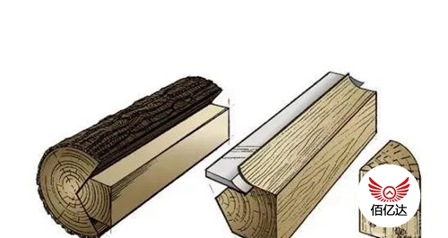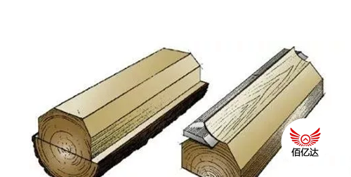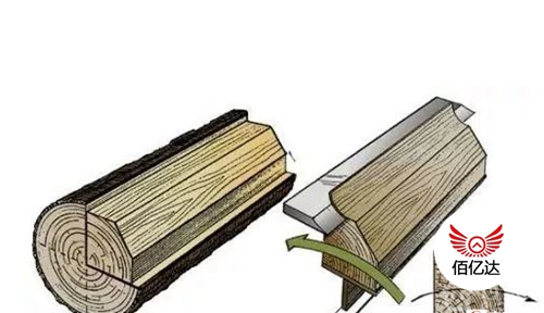 弦切:用切片刀沿著原木中心的并行線,切出木片。如果是對開原木切出來的弦切木皮,做出來的建筑木方就會形成年輪圖案木紋。