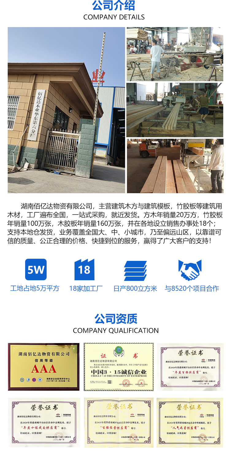 您好,歡迎來到湖南佰億達(dá)物資有限公司生產(chǎn)、經(jīng)銷、批發(fā)各種規(guī)格的建筑方木板材、木膠板等等。