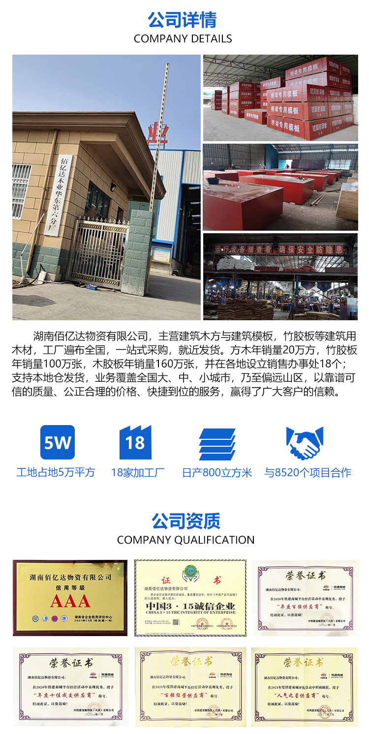 您好,歡迎來到湖南佰億達(dá)物資有限公司生產(chǎn)、經(jīng)銷、批發(fā)各種規(guī)格的建筑方木板材、木膠板等等。